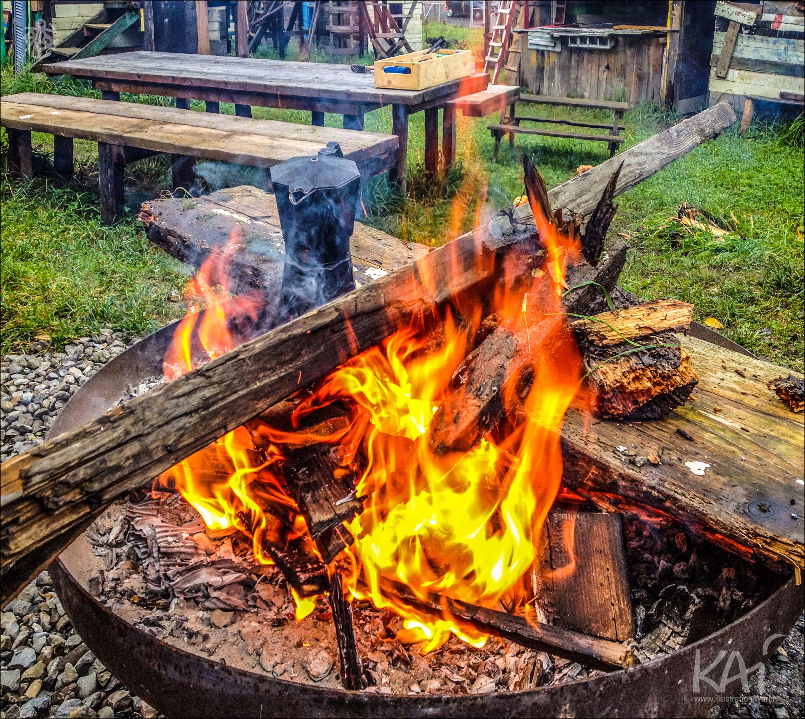 The space next to the leader’s hut became a kind of ritual place for me, and the large fire in the fire bowl was a powerful, cleansing point of initiation and welcome, around which a village-like community would form anew every Wednesday and Saturday afternoon.